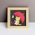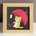[複製画]和紙ちぎり絵アートプリント(無料ラッピング付)『梅雨空とネコ』てるてる坊主に赤い雨傘、三毛猫の小さなウォールデコ