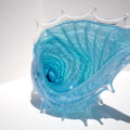 繊細なブルーと白の貝の年輪のような模様を色ガラスで表現しました。