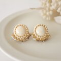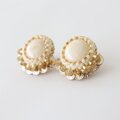 ふんわりアイボリーの煌めきイヤリング/大ぶり・上品・ビーズ刺繍