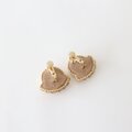 優しいアイボリーカラーのアクリルカボションを繊細なビーズステッチでフレーミングし、スパンコールをあしらって煌めきをプラスしたビーズ刺繍のイヤリングです。程よい大きさと軽やかな付け心地で、デイリーに楽しむことができます。