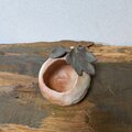 本体は白土、葉は赤土で作っているので色味が異なります。