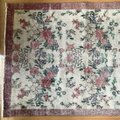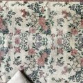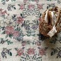 くすみがかった生成りのベースに、優しく咲き誇る花々。