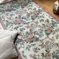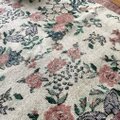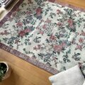ピンクやラベンダー、落ち着いたグリーンの色合いが織りなすフローラルパターンは、まるで自然の中に佇んでいるかのような心地よさを届けてくれます。