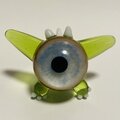 耐熱ガラスで作られたモンスター型のオブジェです。ひとつひとつ虹彩や体の色が違うので、シリアルナンバーが背中に貼ってあります。