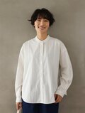 実用性と上品さを兼ね備えたストライプシャツ コットンジャガードストライプシャツ ベージュ*ホワイト 250507-2