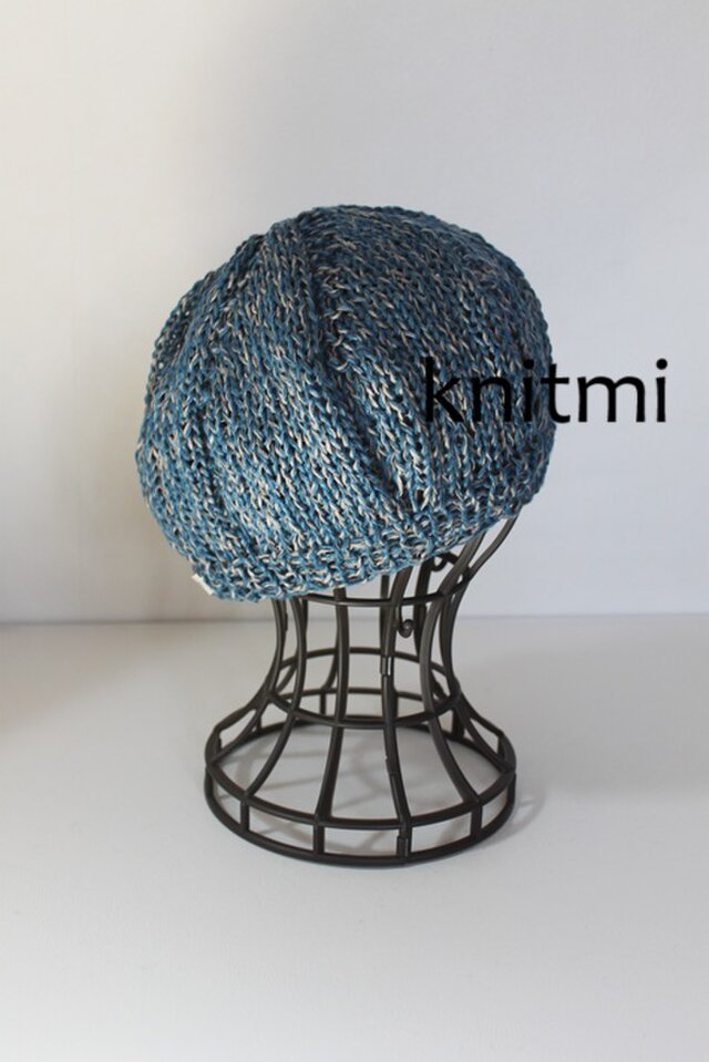 【北欧リネン100%】しめつけない 春夏ニット ベレー帽子 ニット帽 デニムカラー ブルーグレーmixのコピーのコピー