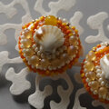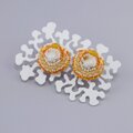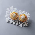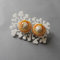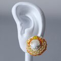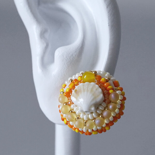 おしゃべりなイヤリング 5 まる シェル イエロー おおぶり ニッケルフリーイヤリング カラフル 一点もの ビーズ刺繍