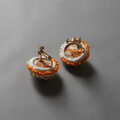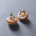 金具が選べる おしゃべりなイヤリング ピアス 50 まる オレンジ おおぶり サージカルステンレス 一点もの ビーズ刺繍とても素敵です。