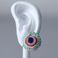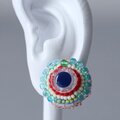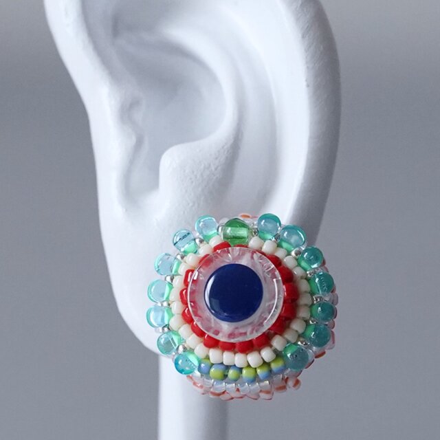 おしゃべりなイヤリング 8 まる トリコロール おおぶり ニッケルフリーイヤリング カラフル 一点もの ビーズ刺繍