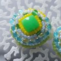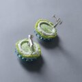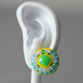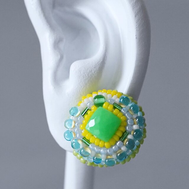 おしゃべりなイヤリング 9 まる グリーン おおぶり ニッケルフリーイヤリング カラフル 一点もの ビーズ刺繍