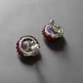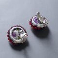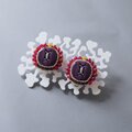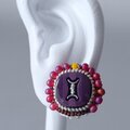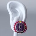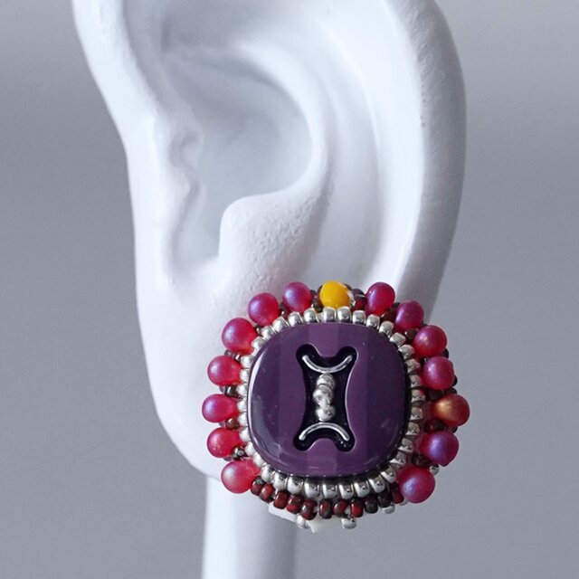 おしゃべりなイヤリング 11 まる スクエア パープル ニッケルフリーイヤリング おおぶり 一点もの ビーズ刺繍