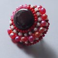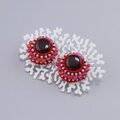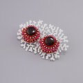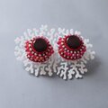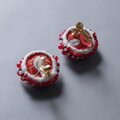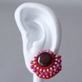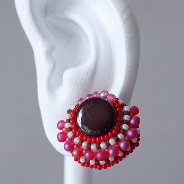 おしゃべりなイヤリング 12 まる ブラウン レッド ニッケルフリーイヤリング おおぶり 一点もの ビーズ刺繍