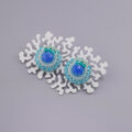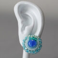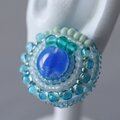 おしゃべりなピアス 2 まる クリア ブルー おおぶり サージカルステンレスピアス 一点もの ビーズ刺繍
