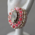 おしゃべりなピアス 7 まる クリア ピンク ビジュー おおぶり サージカルステンレスピアス 一点もの ビーズ刺繍
