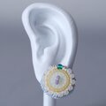 おしゃべりなピアス 11 まる ボタン カラフル おおぶり サージカルステンレスピアス 一点もの ビーズ刺繍