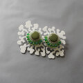 おしゃべりなピアス 14 まる グリーン カラフル おおぶり サージカルステンレスピアス 一点もの ビーズ刺繍