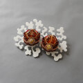 金具が選べる おしゃべりなイヤリング ピアス 50 まる オレンジ おおぶり サージカルステンレス 一点もの ビーズ刺繍とても素敵です。