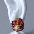 おしゃべりなピアス 15 まる ブラウン リーフ おおぶり サージカルステンレスピアス 一点もの ビーズ刺繍