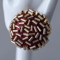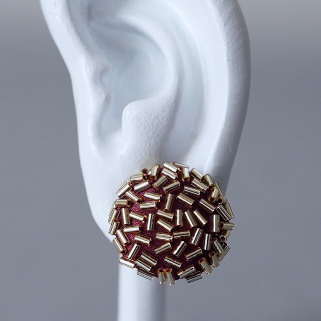 ピアス ばらまく 2 まる 竹ビーズ ゴールド ボルドー サージカルステンレスピアス おおぶり 一点もの ビーズ刺繍