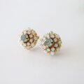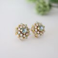 クリスタルビジュー刺繍イヤリング(ペールグリーン)/誕生日・プレゼントにも