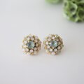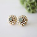 ニュアンスカラーがトレンドのペールグリーンのビジュー刺繍ピアスです。