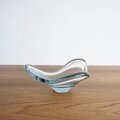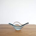 1950〜60年代にかけて制作されたデンマークHolmegaard(ホルムガード)社製の Fionia(フィオニア)ガラスボウルです。デザインはホルムガード社を代表するPer Lutken(ペア・ルトケン)によるもの。流れるような曲線のフォルムと澄んだブルーが美しく、見る角度によって様々な表情を見せてくれる作品です。