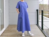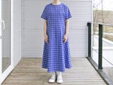 すっきり爽やかな青地に白のウィンドウ・ペンチェックが印象的な、国産のコットン100%オックスフォード生地を使ったシンプルなワンピースです。