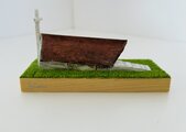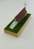 白い壁に銅板の赤い屋根との組み合わせた教会を芝生の上に佇んでいる様子に仕上げて少し朽ちた雰囲気を醸し出しています。