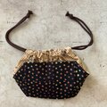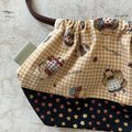 コットン素材で作った可愛らしい模様の巾着袋。カバンの中を整理したり。何か大切なもの入れにしたりと使い方いろいろです。便利サイズの巾着袋です。