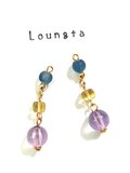 カラフル3連ゆらゆらピアス ネイビー イエロー パープルの軽いピアス 夏ピアス 樹脂ピアス
