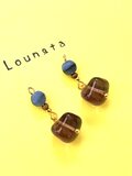 チェコビーズピアス ネイビー パープル素材はガラスビーズ 樹脂ピアス