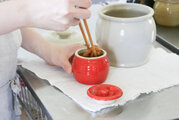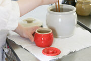 職人さんが丁寧につくる昔ながらのお漬物容器の甕(かめ)です。