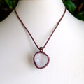 形状が個性的でパワフルな水晶原石が引き立つように、シックな色合いのコードでシンプルに丁寧に編み込んで印象的で魅力あふれるマクラメ編みペンダントに仕上げました。