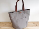 上質な日本製帆布を使用したシンプルな丸底トートバックです。 丸底でたくさん入ります。 取手はベジタブルタンニンのレザーです。 ポケットは4箇所あります。(外側×2)(内側×2)