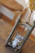 今日は庭で遊んでいるローズマリーを2本刺して香りを楽しんでいます