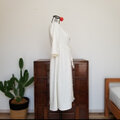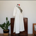 ∴再出品∴リネンのフィッシュテールワンピースこの度はありがとうございます。上質なリネンにセンスの良いデザインで気に入りました。胸がVネックで開いているので顔、首まわりがすっきり見えます。これから歳を重ねてグレーヘアになった時にこの赤色が素敵かなと長い目で考えて決めました。サイズの調整もしていただき大満足です。また機会がありましたらどうぞ宜しくお願いします。