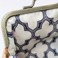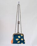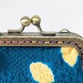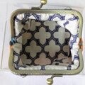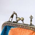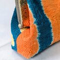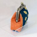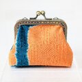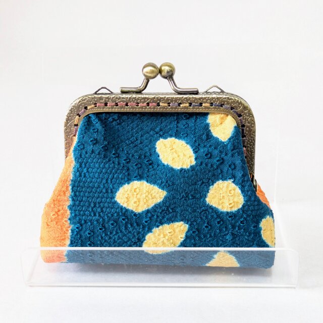 綺麗なオレンジ色と紺色に地模様のある着物からがま口を作りました。
