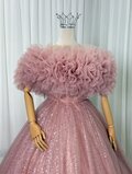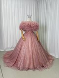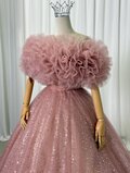 カラードレス ピンク 取り外しオフショルダー キラキラチュール 編み上げ 可愛い プリンセスライン 花嫁