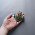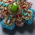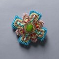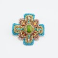 変形クロスのブローチ 10 ビーズ刺繍 一点もの イエロー グリーン ブルー おおぶり クリスマス サテン