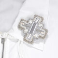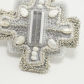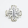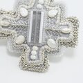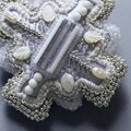 変形クロスのブローチ 11 ビーズ刺繍 一点もの グレー ホワイト シルバー おおぶり クリスマス サテン