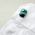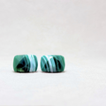 立体的にカットしたクリソプレーズをつかったカフスボタン。