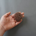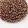 ビーズ刺繍をしようと、竹ビーズをマットにたくさん出した時、ランダムに散らばった様子が面白く目が離せなくなりました。