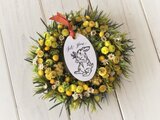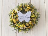 濃淡の異なるグリーンをベースに、鮮やかなイエローのイモーテルやアマレリフラワーなどをアレンジしたミニリース。