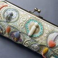 ふたこぶビーズ刺繍の眼鏡ケースがま口 Islandありがとうございました。発注後に制作して頂いた作品もありましたのに、3点共に緻密ビーズワークで驚きました。それでいて色もデザインも自由!!素敵です。一つ一つに見とれてしまいます。迅速な対応、素敵なラッピングと梱包、すべてが「月によろしく」さんなのですね。素敵な出会いに感謝です。