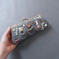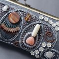 眼鏡ケースにも ビーズ刺繍のペンケースがま口 19 ブルーグレー 一点もの 送料無料 クリスマス 母の日 ギフト