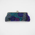 眼鏡ケースにも ビーズ刺繍のペンケースがま口 2 煙 ブルー ブラック 一点もの 送料無料 両面刺繍 母の日 ギフト