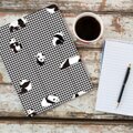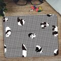 ギンガムチェックの上にパンダのイラストが施されており、ユーモア溢れるデザインが目を引きます。