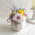 優しい色味と鞠のような可愛い花器が魅力の御供花です。