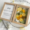 文字入れ可*イエロー フォトフレームボックス 還暦祝い 両親贈呈品 結婚祝い 開業祝い プリザーブドフラワーのコピー