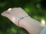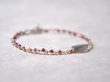 ルビー・淡水パール・シルバーの細かなビーズを編み込みにし、繊細で少しエキゾチックな印象のブレスレットに仕立てました。